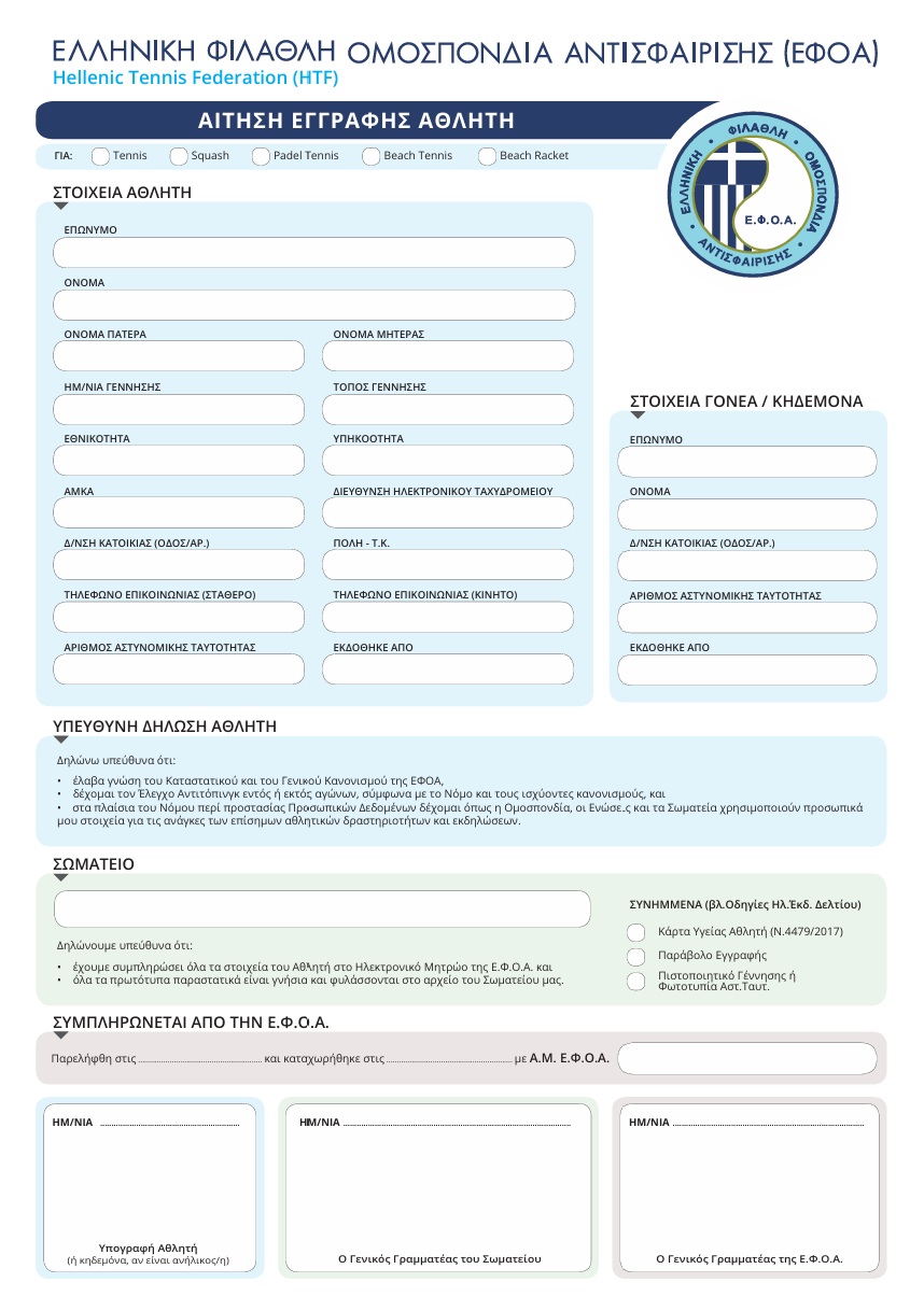 Αναλυτικά πρακτικά ...Ανανέωση Δελτίου Αθλήτη