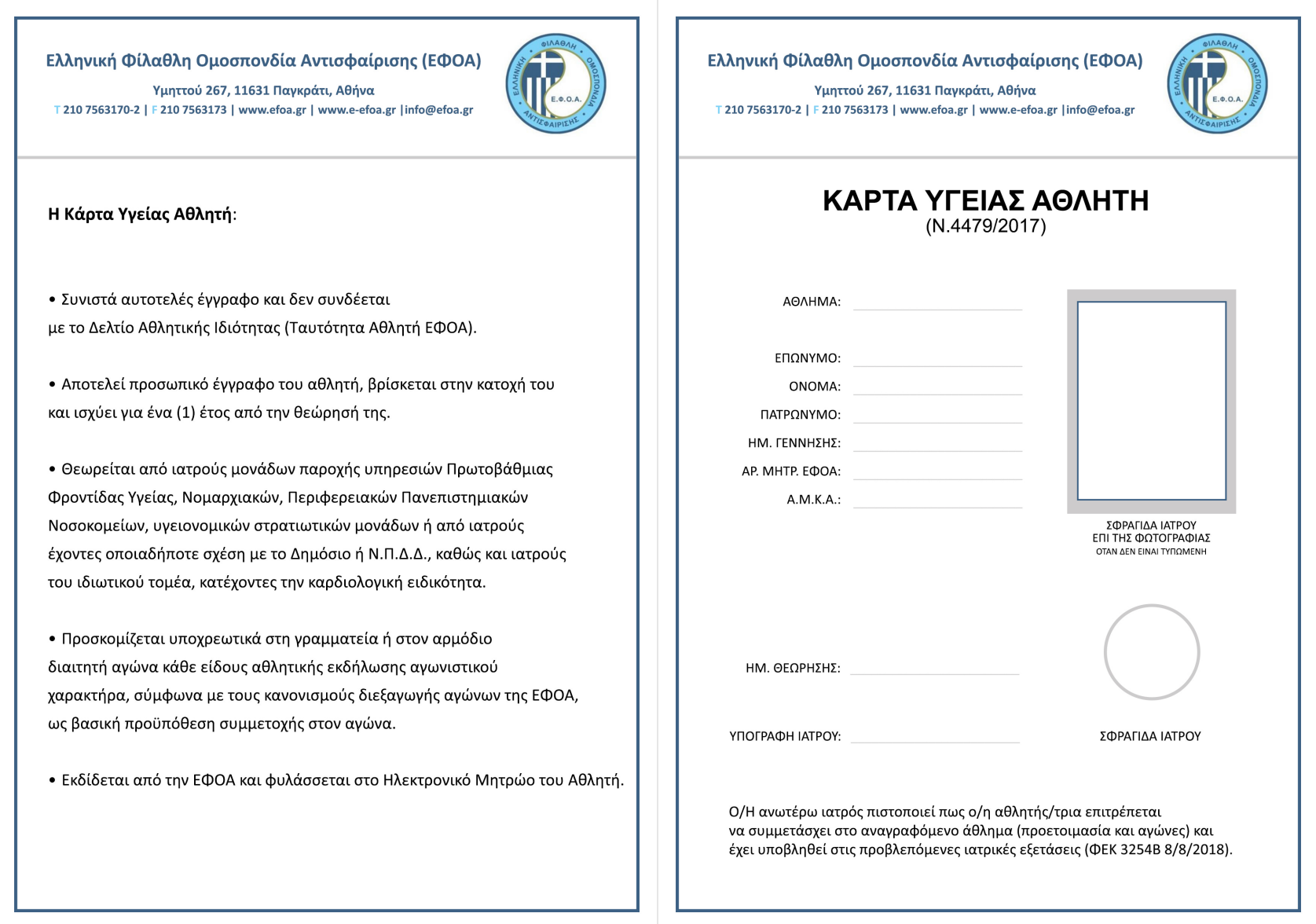 - Κάρτα Υγείας αθλητή θεωρημένη από καρδιολόγο